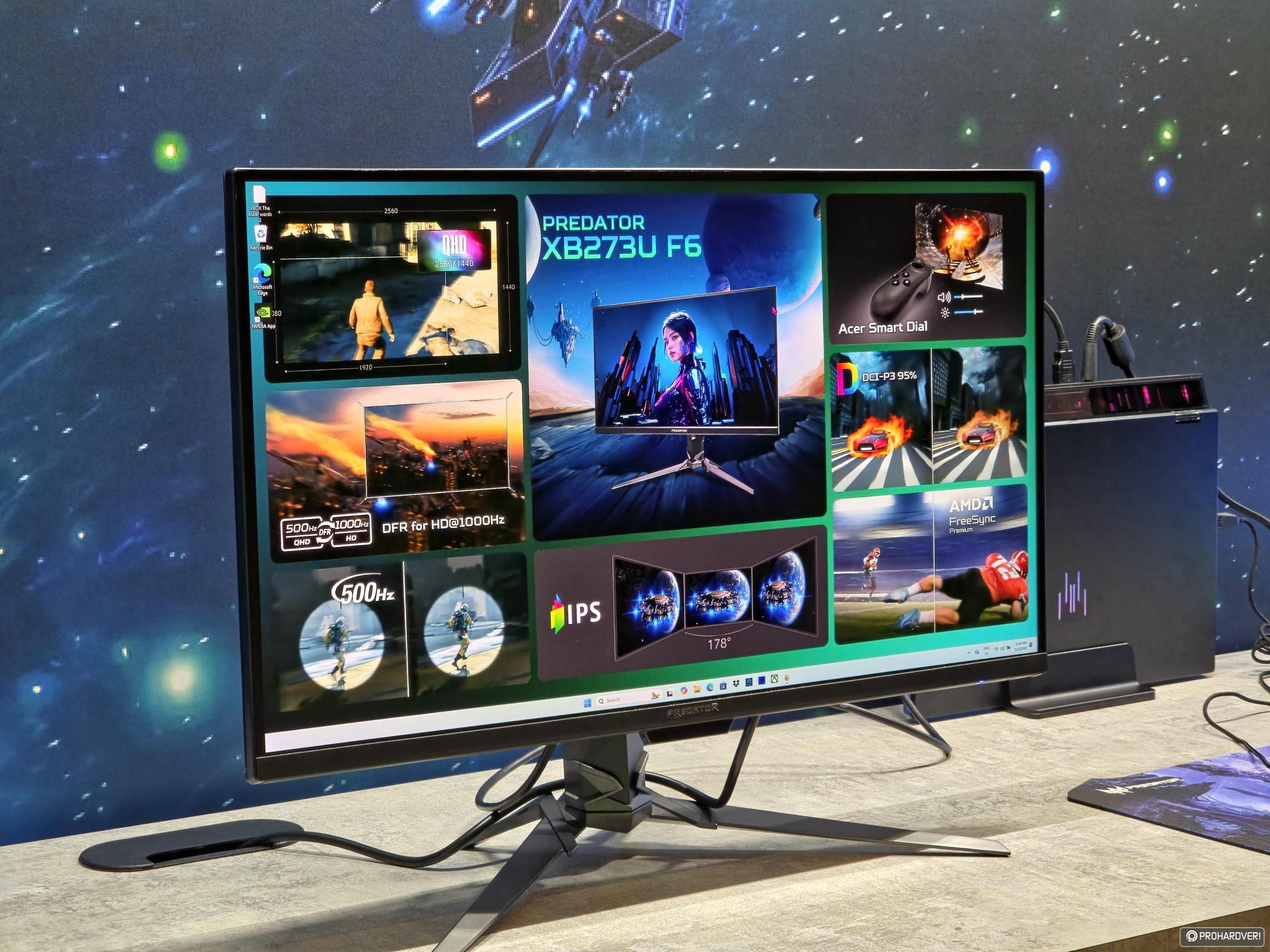 Az Acer néhány monitort is bemutatott a CES alkalmával, és ezek közül talán a Predator XB273U F6 névre keresztelt megoldás volt a legérdekesebb, ugyanis 27 hüvelykes IPS panele alapból 500 Hz-es képfrissítési frekvenciát párosít 2560x1440 pixeles felbontásához, azonban 720p mellett – DFR (Dynamic Frequency and Resolution) módban – már nem kevesebb, mint 1000 Hz-et ígér a leendő tulajoknak.