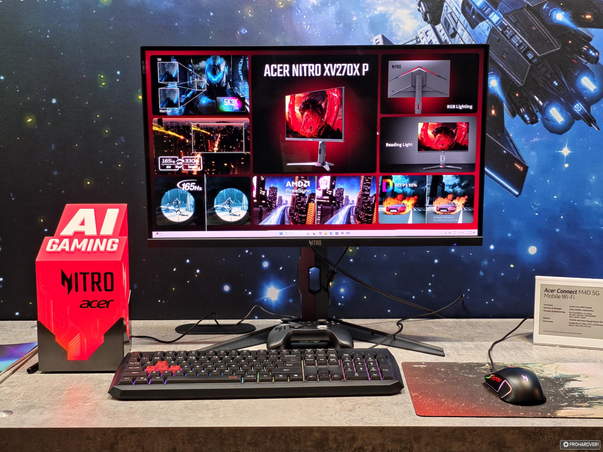 A játékosokat célzó halmaz harmadik képviselője a szintén dual mode-os Nitro XV270X, amely bár visszatér a 27 hüvelykes felségvizekre, viszont a képpontszámot 5120x2880-ra emeli, 165 Hz-es képfrissítési rátával kísérve. Amennyiben megelégszünk a sztenderd 1440p-vel, 330 Hz lesz a jutalmunk, és a jellemzően 350 cd/m²-es fénysűrűség 400 cd/m²-ben tetőzik HDR módban, de a többi lényegi specifikáció – az egyelőre kérdéses statikus kontraszttól eltekintve – azonos az 1000 Hz-re képes rokonéval.