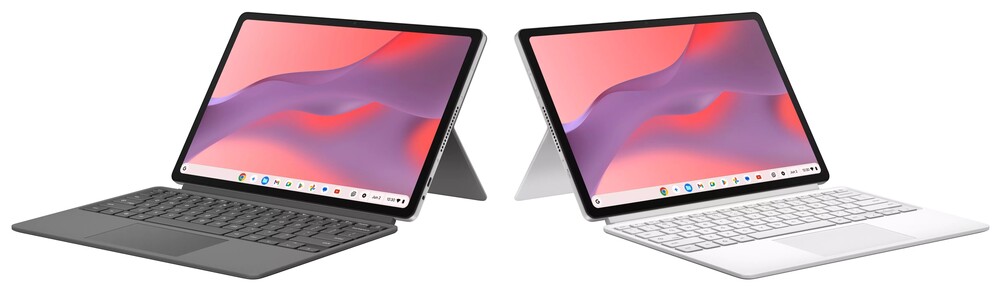 A 4, 8 vagy 12 GB-nyi, 6400 MHz-es effektív órajelen ketyegő LPDDR5X memóriával kérhető megoldás eMMC flash adattára 64, 128 vagy 256 GB-os lehet, és opcionálisan mágneses USI 2.0 stylust adhatnak hozzá. A hálózathoz Bluetooth 5.4, illetve W-Fi 6 vagy 7 modullal kapcsolódó újdonság frontális, valamint hátulsó, tömbmikrofonnal kiegészített webkamerái egyaránt 5 megapixelesek, és pogo pines csatlakozással bíró chichlet billentyűzete könnyedén leválasztható a Corning Gorilla Glass 3-mal védett, ujjlenyomatoknak ellenálló képernyőjéről, aminek egyébként mágneses támaszték figyel a hátulján.