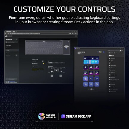 A Corsair a CES-en bemutatta a Galleon 100 SD névre keresztelt, Axon processzoros klaviatúráját, amelynek érdekessége, hogy bár a 100 százalékos kivitelű eszközökre jellemző szélességgel rendelkezik, a jobb oldalán numerikus pad helyett egy 5 hüvelykes, négy widget megjelenítésére képes (színes) képernyővel, tizenkét minikijelzős gombbal, illetve két tárcsával dolgozó Stream Deck került beépítésre.