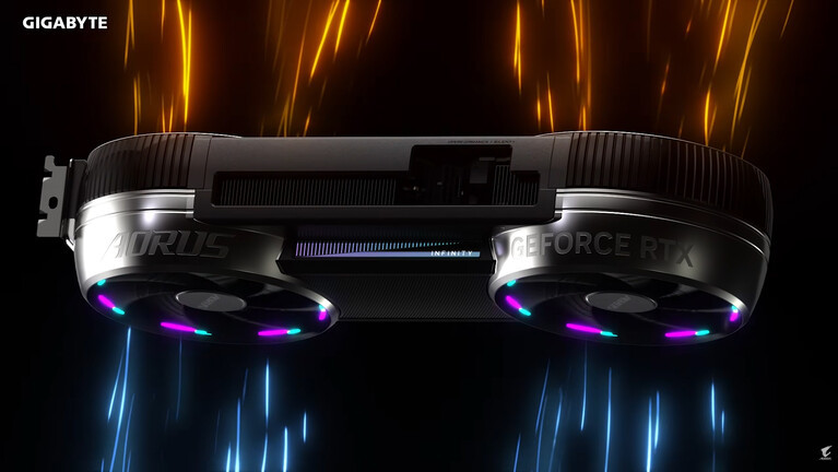 A Gigabyte egy meglehetősen érdekes külsejű grafikus vezérlővel borzolta a kedélyeket Las Vegasban, név szerint az Aorus GeForce RTX 5090 Infinity 32G-vel, ami ránézésre megtéveszti az egyszeri szemlélődőt, ugyanis valójában nem kettő, hanem három ventilátor dolgozik rajta, igaz, a középső, kisebb méretű példány egy fémháló mögött rejtőzik.