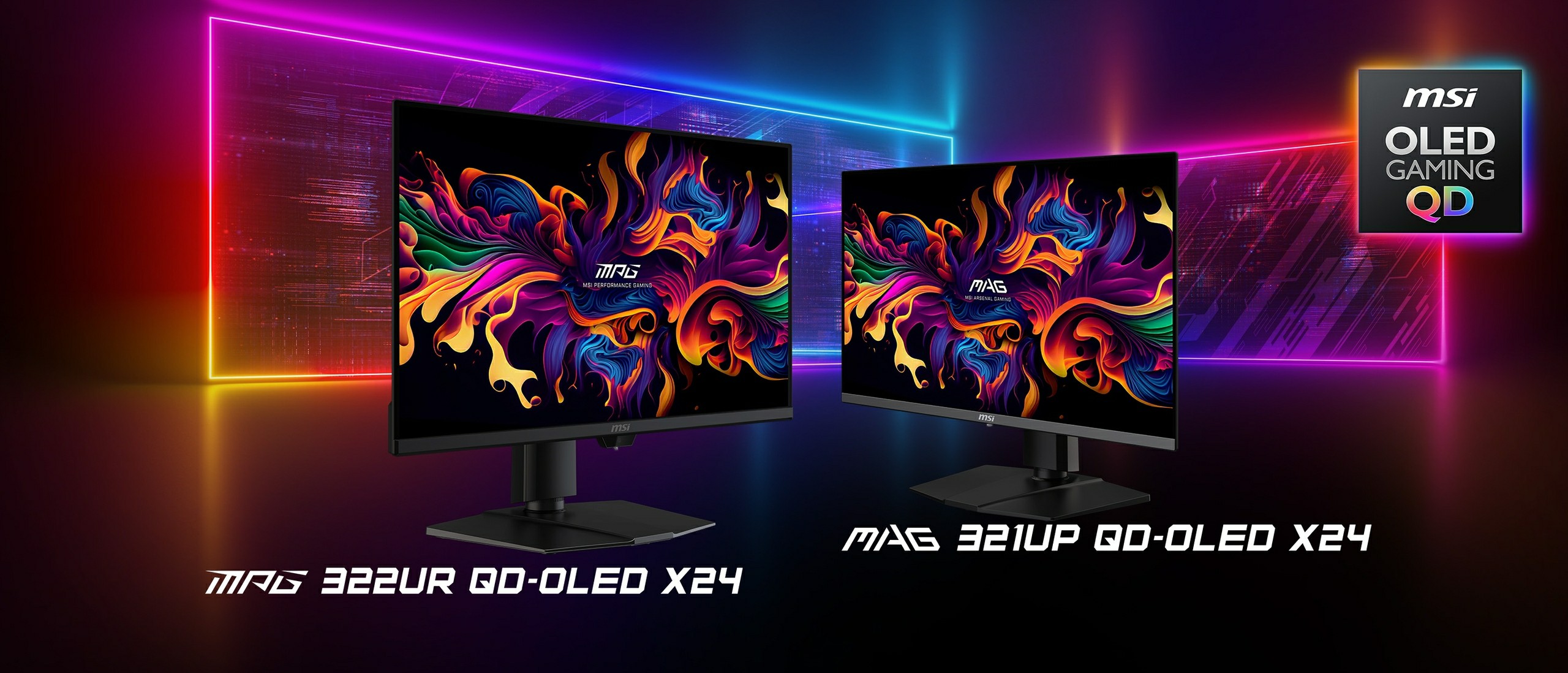 Ugyanezzel a modern paneltechnológiával felvértezve, viszont 4K felbontással jönnek a síkképernyős, 32 hüvelykes MPG 322UR QD-OLED X24, valamint MAG 321UP QD-OLED X24 típusjelű modellek, ám ezeknek még nincsenek termékoldalaik, így a részletes specifikációk egyelőre nem ismertek, de annyi biztos, hogy az előbbi jószág csúcssűrűsége HDR módban 1000 cd/m².
