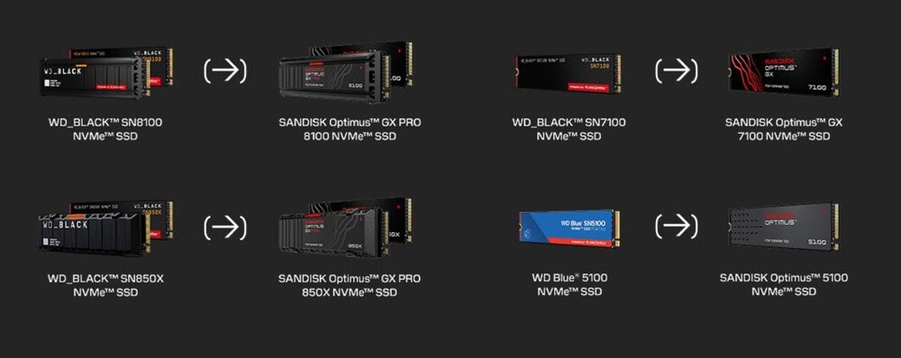 Valójában nincs szó friss fejlesztésekről, így a SanDisk Optimus a WD Blue SN5100 NVMe SSD, a Sandisk Optimus GX a WD_BLACK SN7100 NVMe, míg a Sandisk Optimus GX PRO a WD_BLACK SN8100 és SN850X NVMe új neve.