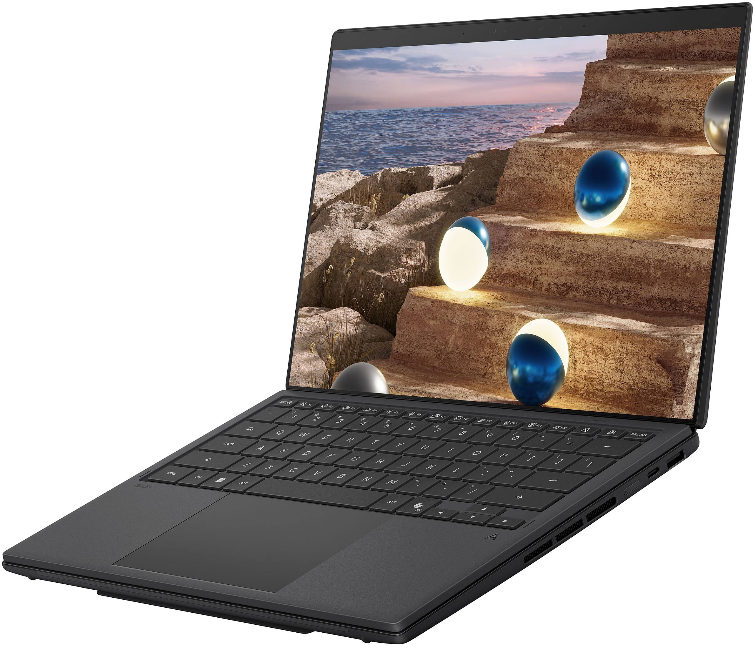 A most leleplezett új Zenbook Duo, melyet mi is kipróbálhattunk, teljes egészében Ceraluminium bevonatot kapott, amivel kiváló karcállóságot és strapabírást kapunk, a kijelzőket pedig Gorilla Glass védelmezi. Kicsit módosítottak a hátsó támaszon is, mely így sokkal inkább az alsó burkolatba simul, és átalakították a billentyűzet fizikai csatlakozásáról gondoskodó pogopines interfészt is, mely sokkal kevésbé türemkedik ki, ha nincs használatban.
