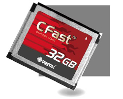 A Pretec 32 GB-os változatot dobott piacra az új CFast szabványból. A kártya új generációs, SSD adattároló, így lehetőség nyílt arra is, hogy Sata csatlakozási felülettel lássák el (7 kivezetés az adatforgalmat, 17 pedig a tápellátását biztosíthatja). Ezzel újabb rekordot állítottak fel, hiszen megalkották a legkisebb Sata interfésszel ellátott SSD-t (36 x 43 mm). A 32 GB kapacitású kártya a ma elérhető leggyorsabb, hagyományos CF-nél 300%-kal fürgébb elérést tesz lehetővé: akár a 160 MB-ot is kiolvashatunk másodpercenként.