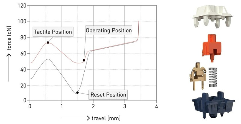 A Cherry kínálatában felbukkant egy új kapcsoló, amit még májusban jelentettek be, és az az érdekessége, hogy az első olyan megoldás a vállalat palettáján, ami az úgynevezett "long pole" kivitelt alkalmazza, azaz a – jelen esetben POM-ból (polioximetilén) lévő – szára hosszabb az átlagnál, így tövig nyomva kontaktusba kerül a kapcsolóház aljával, a sztenderdnél némileg keményebb bottom outot, illetve megnövekedett gépelési zajt produkálva ezzel.