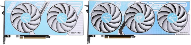 A következő négyest a retró hangulatot árasztó hologramos díszítéssel feldobott, háromventilátoros iGame GeForce RTX 4060 Ti Ultra W-V, valamint a kétventilátoros iGame GeForce RTX 4060 Ti Ultra W DUO OC-V 8 és 16 GB-os variánsai alkotják. A 325 x 134 x 48 mm-es és 255 x 136 x 45,5 mm-es fizikai méretekkel rendelkező, félpasszív megoldások GPU Boost/OC frekvenciáit 2535/2580 MHz-re lőtték be a tervezők.