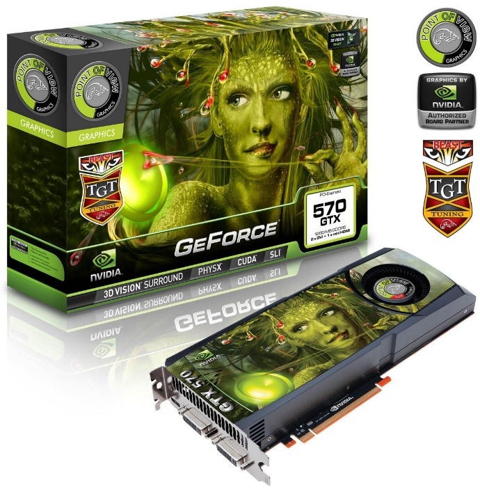 A Point of View tervezői is aktív munkával töltötték a karácsony előtti utolsó heteket. Ennek eredményeképpen a vállalat be is jelentette a GeForce GTX 570-es kártya TGT szériás versenyzőit, melyek egységesen a Beast jelzést viselik. Mindkét modell a 480 darab aktív CUDA maggal operáló GF110-es lapkát alkalmazza, a mag-, a shader- és az effektív memória-órajelet pedig 841, 1682 illetve 3960 MHz-re sikerült belőni.