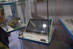 Később, a standon már többre mentünk, de itt is csak vitrinen keresztül tudtunk fotózni, pedig mindent elkövettünk, hogy kinyissák nekünk. Az EP121 képe megtévesztő, a billentyűzet egy dokkolóban van.