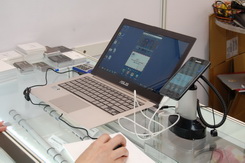 Egy másik érdekes szerkezet, amit kiállított a j5create az a JUC600 Android Mirror volt, ami kábeles összeköttetést tesz lehetővé egy androidos készülék (okostelefon vagy tablet) és egy számítógép között. A modellnév igazából mindent elárul, ugyanis egy szoftver telepítése után a mobil eszköz képe megjelenik a monitoron, és onnantól kezdve a PC beviteli eszközeivel is kontrollálható az adott mobil termék. Az Android Mirror még nem lépett át a tömeggyártás fázisába, de a gyártó állítása szerint ez még a nyáron megtörténhet, vételára 40 dollár körül várható.