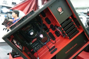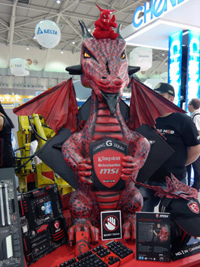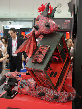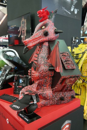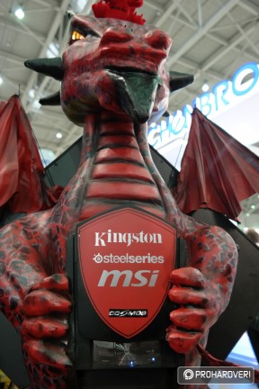 Egy olyan Soccer által készült modot is láthattunk, amiről eddig még egyáltalán nem hallottunk. A vörös sárkányt az MSI Gaming logója ihlette, hátán egy hatalmas, Cooler Master Cosmos II házat hordoz tele MSI, Cooler Master, Intel és Kingston hardverrel, de a Steel Series játékos kiegészítői is átlényegültek sárkányos, MSI-s alakba.