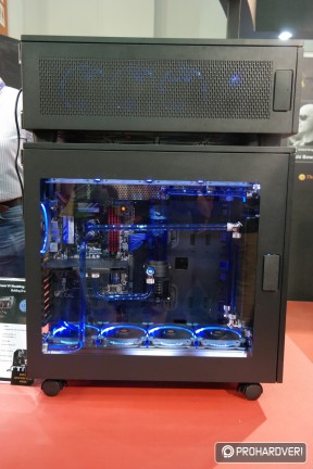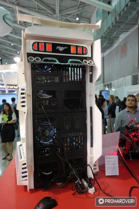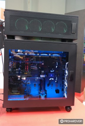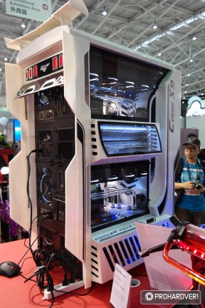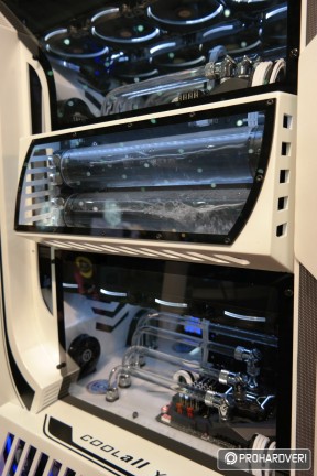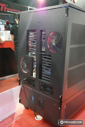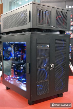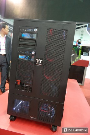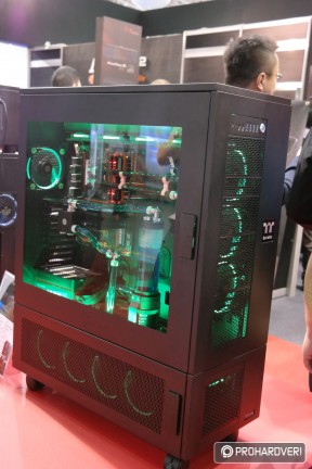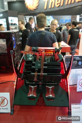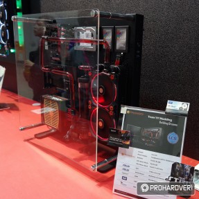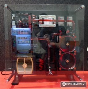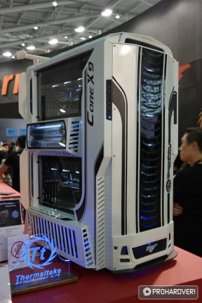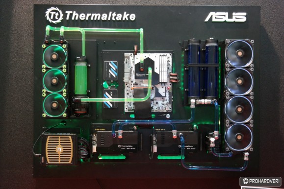 Az egyik legöregebb márka a számítógépes házak, tápok és hűtések piacán a Thermaltake, így nem csoda, hogy hatalmas nagy adag moddal rakta meg a standját, melyek természetesen rengeteg Thermaltake terméket használtak fel. Külön figyelmet kaptak idén a Pacific vízhűtéses rendszer elemei. Például az ASUS támogatásával készített, egy panelre kihajtható modnál.