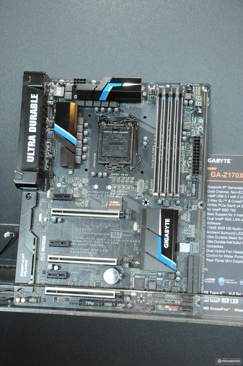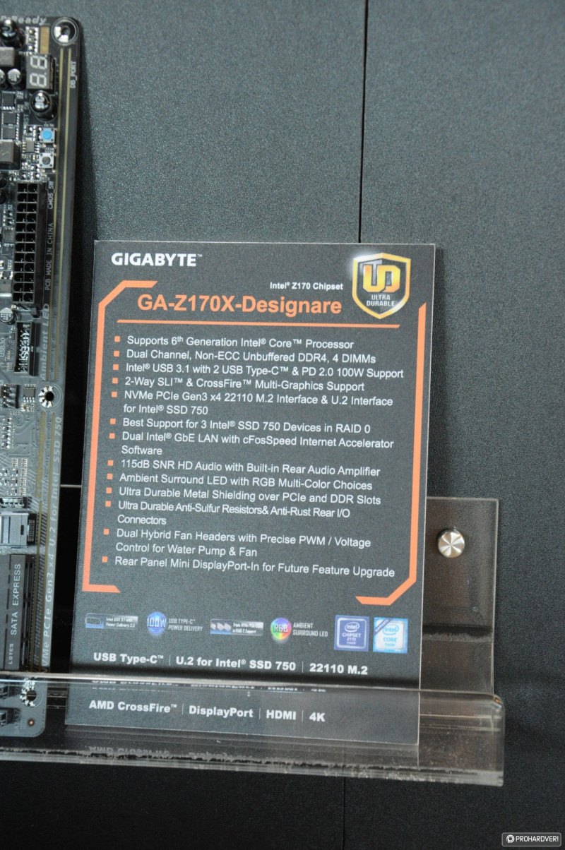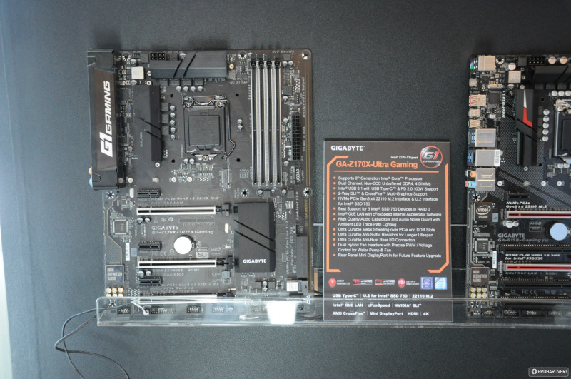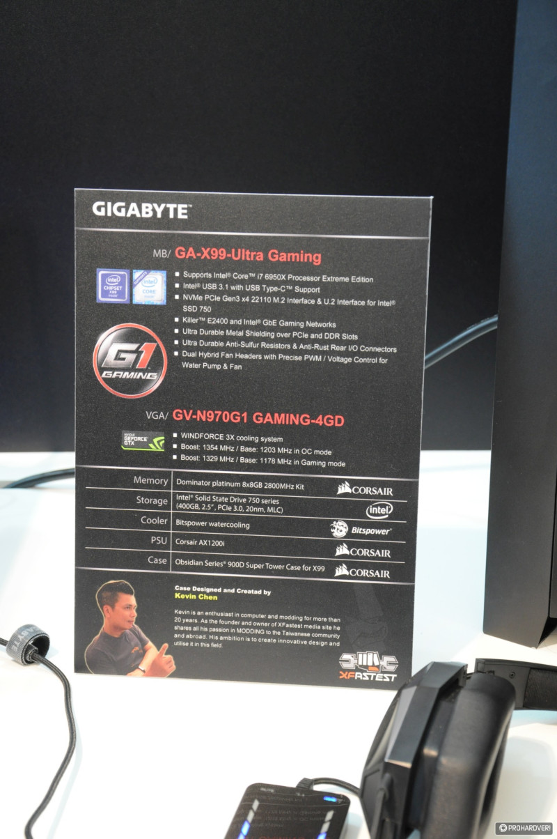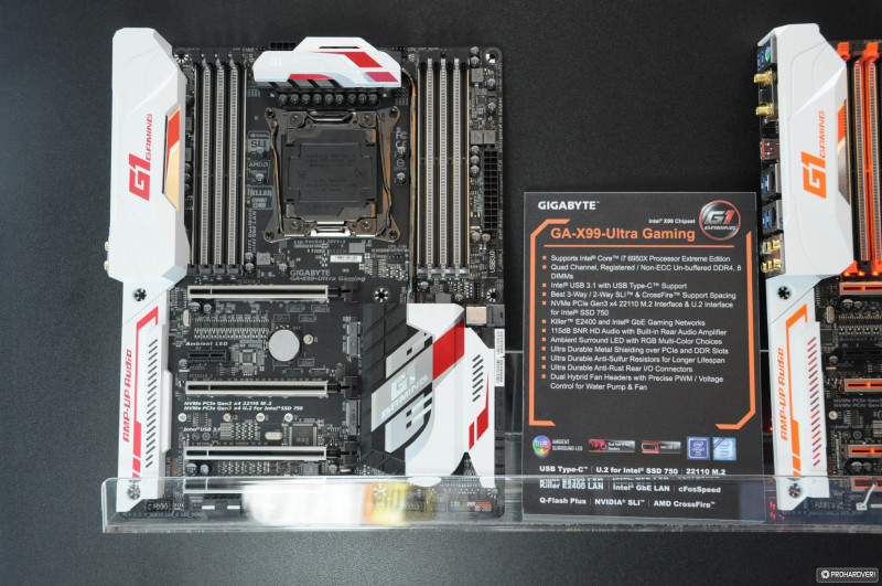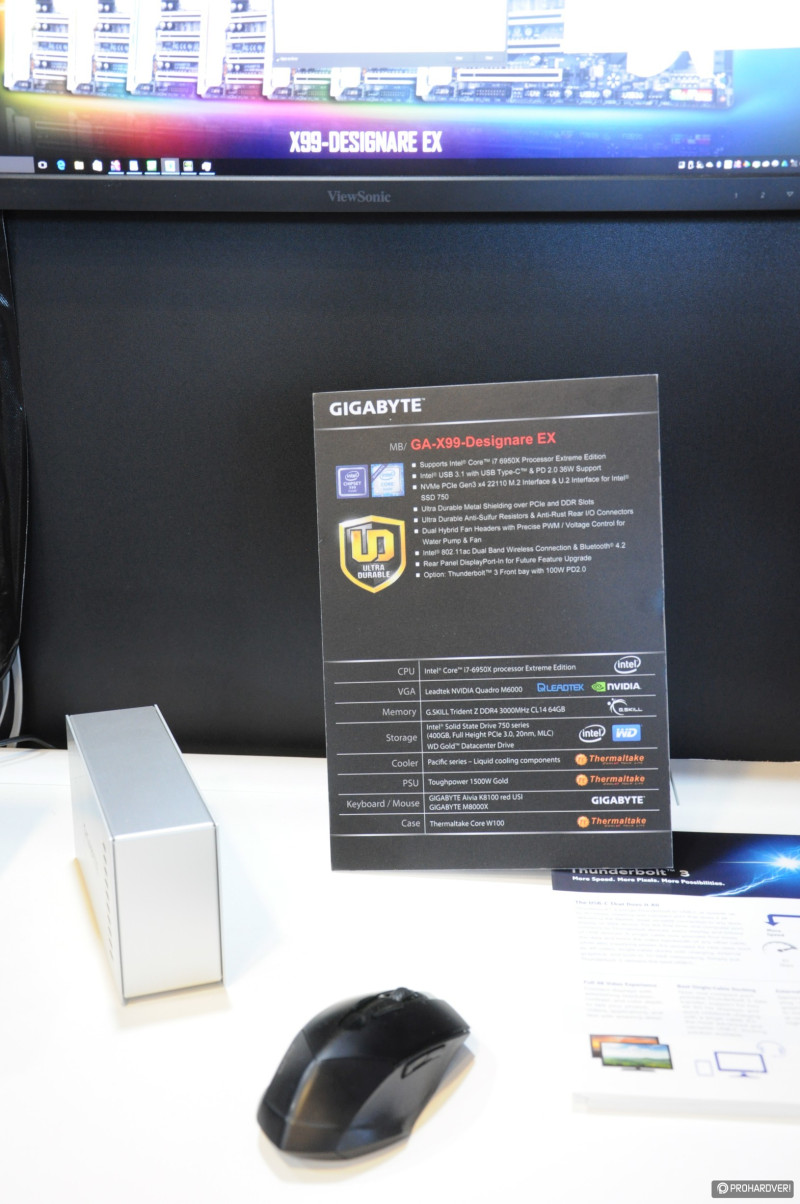 Az NVIDIA nem sokkal a rendezvény előtt leplezte le a GTX 1080-as videokártyákat,a Founder Edition-t minden gyártó be is jelentette íziben, de jöttek áttervezett változatok is. Korántsem volt akkora a felhajtás, mint azt a Computex előtt tippeltük volna. Természetesen azért a Gigabyte is kiállított a két egyedi megoldást, ráadásul rögtön SLI-ben egy izmos X99-es konfigurációban. Persze felbukkant a GTX 1080 ugyanezen típusa Thunderbolt 3-as külső VGA dokkolóban és az U.2, PCIe SSD-k képességeit bemutató demókonfigurációban is.