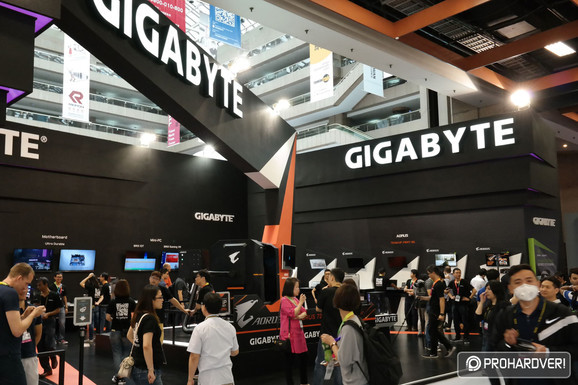 A Gigabyte standjáról tudni kell, hogy a cég az előző évhez hasonlóan két különböző helyen mutatja be az újdonságait, ezek közül az egyik a most bemutatni kívánt stand, a másik pedig egy zártkörű bemutatóhelyiség a kiállítás területén kívül. Ez utóbbi ígérkezik nagyobb durranásnak, de sajnos ide nem lehet csak úgy belépni, a tömeg elkerülése végett csoportokba szervezték a jelentkezőket, mi pedig csak holnap nézhetünk be a színfalak mögé. Ezzel szemben a kiállítás területén lévő stand szabadon látogatható, így ezt sem hagyhattuk ki.