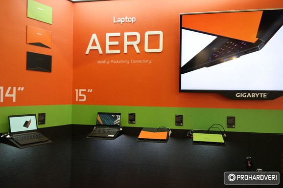 A kiállítótér nagy részét a notebookok uralták, melyek a magyarországi közönség számára talán kevésbé érdekesek, mint azon gyártók hordozható gépei, amelyeknek termékei otthon is megvásárolhatóak, hiszen a piaci sajátosságok miatt a Gigabyte/Aorus nincs jelen notebook termékekkel. Ez persze nem jelenti azt, hogy nem érdemelnek meg pár sort, már csak azért is, mert pont a fent említett dolgok miatt nem mindennap láthatjuk élőben ezeket a gépeket.