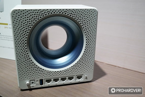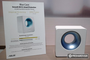 Végül az utolsó újdonságot egy szokatlan formatervű router, az ASUS Blue Cave jelenti. A Blue Cave ezúttal nem fantázianév, a készülék tényleg olyan, mintha fúrtak volna rá egy lyukat, amit aztán kék peremmel láttak el. Az útvonalválasztó egyébként nem egy hatalmas szerkezet, de a dizájntól eltekintve alapvetően egy közönséges AC2600-as router, hátoldalán négy gigabites Ethernet LAN porttal és egy gigabites WAN porttal, valamint USB 3.1 csatlakozóval.