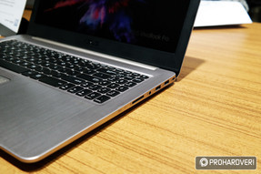 A következő újdonság – a Pro változatoknál maradva – a VivoBook Pro 15 lett, amely tulajdonképpen egy alsóbb kategóriás ZenBook Prónak is minősíthető. Ennek megfelelően maradt a Core i7-7700HQ opció, de a GPU már csak GeForce GTX 1050 lehet maximum, és a háttértárak között is csak SATA SSD-k és HDD-k szerepelnek. A nagy teljesítményű alkatrészek keltette hőt egy kétventilátoros megoldás próbálja meg megfelelő tempóban elszállítani. Megjelenik viszont opcióként az Optane, persze nem önállóan, hanem gyorsítótár formájában, a külső csatlakozók száma pedig bővül az Ethernettel. Sajnos ezért cserébe a Thunderbolt 3 eltűnik, helyette egy Alternate Mode-ot is támogató, USB 3.1 Gen 1-es Type C-t, egy ugyanilyen sebességű Type-A konnektort, illetve két hagyományos USB 2.0 kimenetet kapunk.