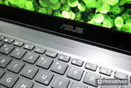 Ami a megtapogatás során szerzett tapasztalatokat illeti, a gép vékonysága ellenére zenbookosan egyben van, nincsenek illesztési hibák, merev is a háza, bár nyilván a kijelzőt a sarkánál emelve azért már érezhető némi csavarodási hajlam. Megnéztük az ASUS által ErgoLiftnek elnevezett zsanérokat is, amelyek neve onnan származik, hogy 135 fokon túl kicsit felemeli a billentyűzetet, hogy könnyebb legyen rajta gépelni. Ezzel kapcsolatban a tartósság lehet kérdés, de a gyártó tesztjei szerint 20 ezer nyitást/zárást is könnyedén kibírnak, úgyhogy remélhetőleg nem lesz velük gond.