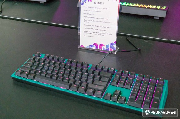 A One 2 mellett kiállították a Cherry alacsony profilú kapcsolóit használó Blade-et – amelyen gyakorlatilag olyan érzés gépelni, mintha egy jobb minőségű notebookot használnánk (persze teljes kiosztással) – és a Shine 7 sorozat több változatát is.