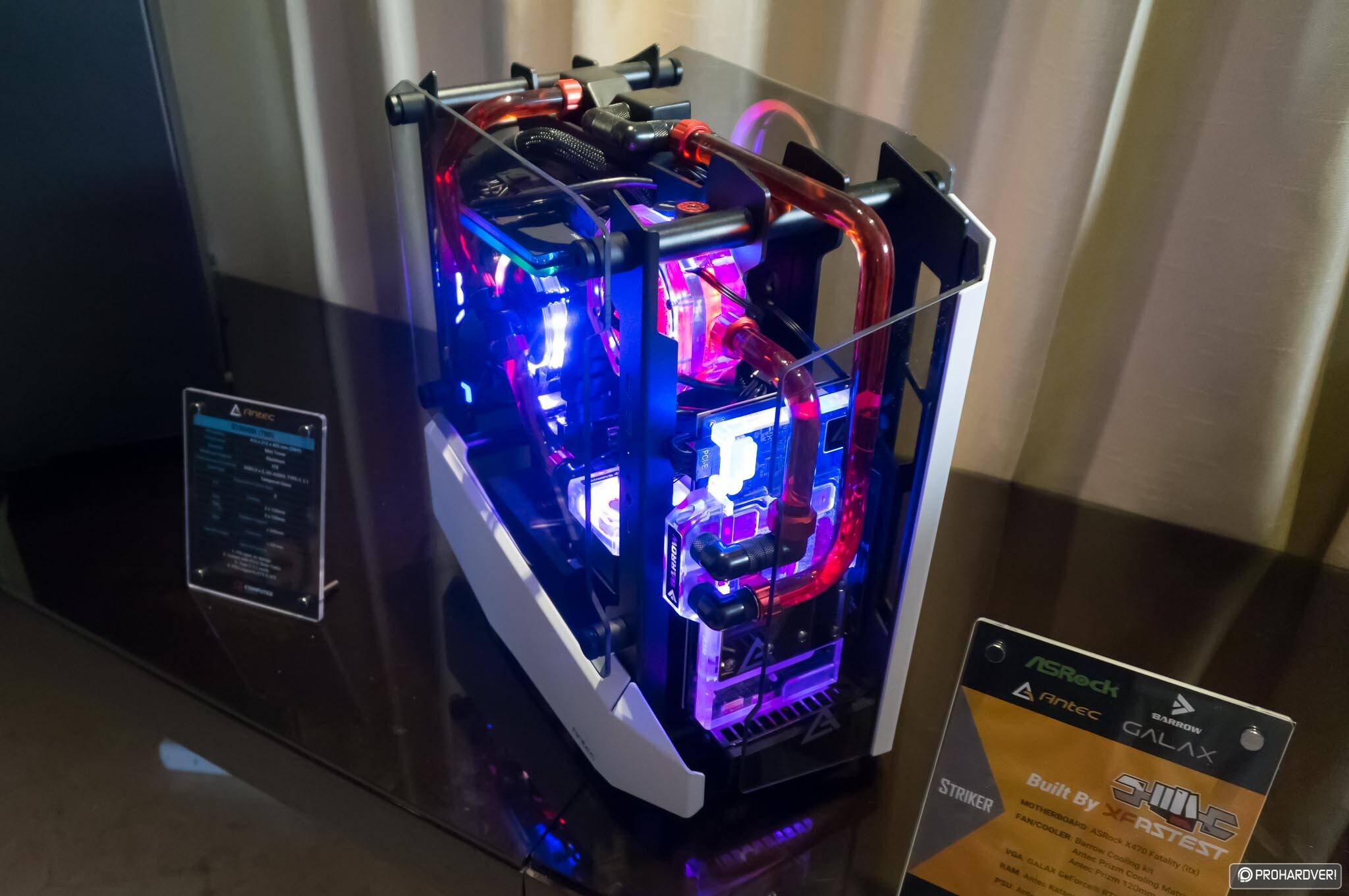 Áttérve a piacra kerülő termékekre, az első az ősszel boltokba kerülő, körülbelül 200 eurós árral nyitó Striker. Ez egy függőleges síkok mentén felépített, kétkamrás open air ház, amelynek két felébe Mini-ITX alaplap, illetve az ehhez szükséges komponensek kerülhetnek. Érdekessége, hogy a VGA-t függőlegesen, tulajdonképpen az előlap mögé kell beépíteni (természetesen a csomag részét képező riserrel), míg a vízhűtés radiátorát ezt ellensúlyozva hátulra pakolhatjuk, a kábelezés pedig a két házfél közötti dupla panelben rejthető el.