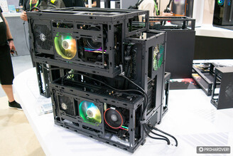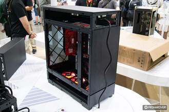 És ha már az InWin és a különleges házak: a CES-en bejelentett Mod Free-t is kiállították. Ez egy több önálló egységből, hasábból összeszerelhető torony, ahol mi viszonylag tág keretek között dönthetjük el, hogy az egyes kamrákat milyen sorrendben építjük össze.
