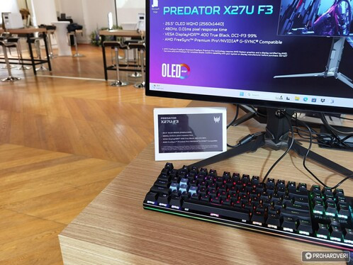A legkisebb lencsevégre kapott modell a 26,5 hüvelykes képátlóval megáldott, 1440p-s Predator X27U F3, ami 480 Hz-es képfrissítési rátával büszkélkedhet, és az AMD FreeSync Premium Pro mellett NVIDIA G-Sync-kompatibilitással rendelkezik. A 0,01/0,03 ezredmásodperces PRT/GtG válaszidővel operáló megoldás kiérdemelte a VESA DisplayHDR 400-as minősítést, miközben 99 százalékban tudja lefedni a DCI-P3 színteret, és csakúgy, mint rokonai esetében, az állítható talpát kábelvezető réssel látták el. Az integrált hangsugárzók 5 wattosak, és a készülék hátulján egy DisplayPort 1.4, két HDMI 2.1 bemenet, egy 90 wattos USB Type-C és két USB 3.2 Type-A csatoló figyel a fejhallgató kimeneten felül.