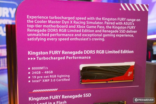 Memóriamodulok, memóriakártyák, külső és belső SSD-k – ezekkel a termékekkel, illetve egy Forma 1-es bokszutca mintájú kiállítótérrel készült a Kingston az idei Computexre. Kezdve is rögtön az első kategóriával, az újdonság itt a FURY Renegade DDR5 RGB Limited Edition kit, mely 2x24 GB-os kiszerelésben, piros-fekete hűtőbordával és 19 effektes RGB világítással érkezik.