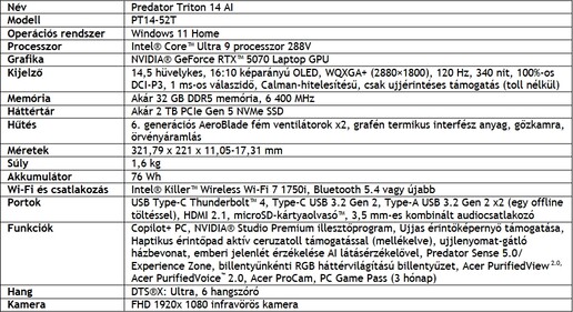 Nem elhanyagolandó a teljesítményorientált Predator Triton sorozat sem, amelyből Triton 14 AI és a Helios Neo 14 AI került terítékre. Előbbi alapját a Lunar Lake, míg utóbbiét az Arrow Lake dizájn adja, emiatt hiába az AI jelzés a Helios Neo opción, a Copilot+ hitelesítést nem kínálja fel.