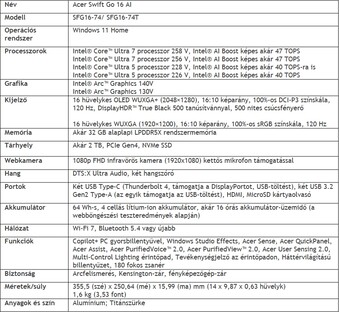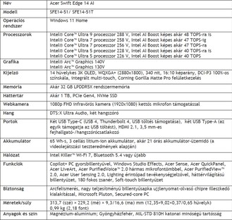 Az Acer Swift Edge 14 AI, Swift Go 14 AI és Swift Go 16 AI trió egységesen az Intel, Lunar Lake kódnevű processzorát használja, minden esetben integrált grafikus vezérlővel, akár 32 GB-nyi LPDDR5X memóriával. Ezek kezdőára rendre 1599, 1199 és 1299 euró lesz.