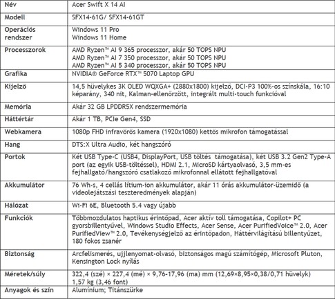 A Swift X sorozaton belülre már jóval potensebb rendszer érkezik, méghozzá a Swift X 14 AI, ami Strix Point kódnevű AMD Ryzen AI dizájnt használ, viszont a grafikai számításokat egy GeForce RTX 5070 Laptop GPU végezheti. Persze az 1799 euróért érkező alapkonfiguráció nem ennyire erős, illetve jön egy AI nélküli Swift X 14 verzió, ami Arrow Lake kódnevű Intel processzort használ, így nem rendelkezik Copilot+ hitelesítéssel. Utóbbiért is minimum 1799 eurót kell fizetni.