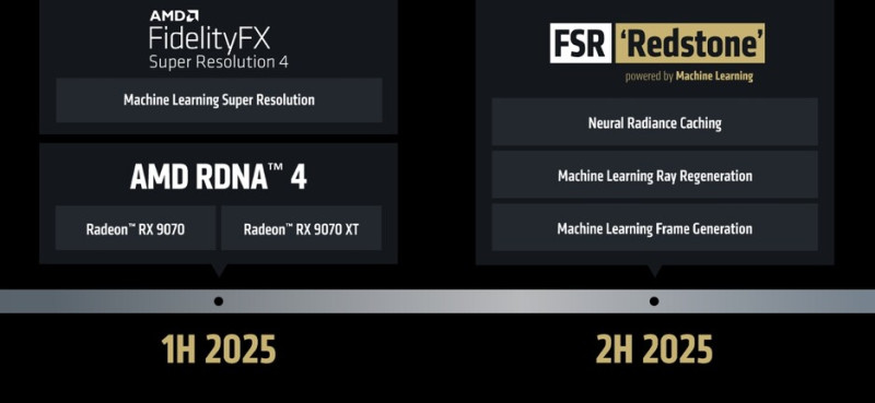 Az AMD bejelentette az FSR 4 továbbfejlesztését is, ami jelenleg Redstone kódnéven fut. Ez az eredeti felskálázó eljárást kiegészíti a Neural Radiance Caching és a Ray Regeneration technikákkal, hogy sugárkövetés mellett hatékonyabban tudja helyreállítani a részleteket, a képgenerálásért felelős rész pedig AI-alapú algoritmust kap. Az említett három újítást a vállalat az év második felében ígéri.
