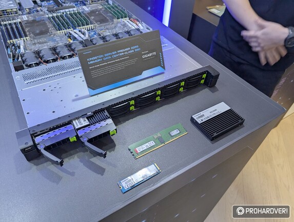Három teremre, három szekcióra osztotta termékbemutatóját a Kingston – az elsőben az idei Computexhez illeszkedő módon az AI és az Enterprise termékek bújtak meg. Ezek között megtaláljuk az akár 128 GB-os méretben is elérhető Server Premier DDR5 memóriát, a DC3000ME PCI Express 5.0-s interfészt használó U.2 formátumú adattárolókba szánt SSD-t, illetve az ugyanide való, de bootlemeznek kitalált testvérét, az M.2 2280 kialakítású DC2000B SSD-t.