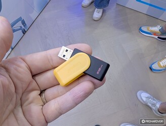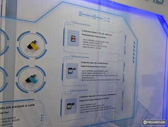Végül a harmadik terem a kreatív részlegé volt, ahol külső SSD-k, USB kulcsok és memóriakártyák kerültek elő. Sajnos itt továbbra sem láthattuk azt, amit szerettünk volna, a kiválóan sikerült XS2000 és XS1000 nem kapott USB4-re és/vagy Thunderbolt 5-re építkező utódot. Persze lehet azzal érvelni, hogy az 1-2 GB/s egy ilyen eszköznél mindenre elég, és hogy az USB4 portok terjedése is csak most kezdődik de közben a konkurencia sem alszik, illetve négy éve ugyanitt álltunk az USB 3.2 Gen 2x2-vel, mégis megjelent az XS2000. Mindenesetre a „fidget spinner” formátumú Exodia S kulcsok jól néznek ki, többféle színben és 64 GB-tól 512 GB-ig terjedő kapacitásban érhetők el és USB 3.2 Gen 1 kompatibilisek, ami nem rossz.