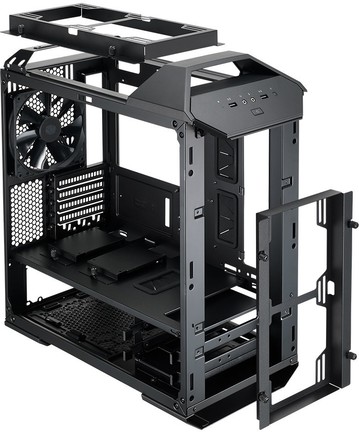 Az I/O panel a ház tetején kapott helyet, és a hangkimeneten, illetve a mikrofonbemeneten kívül két darab 3.0-s USB csatlakozóval rendelkezik. A processzorhűtő magassága 19 cm lehet, és persze most is van kivágás az alaplaptálca mögött az egyszerűbb felszereléshez. Mindemellett a vízhűtők szerelmeseinek fontos lehet, hogy a házon belül felülre maximum 240, míg hátulra pedig 140 mm-es radiátor szerelhető fel.