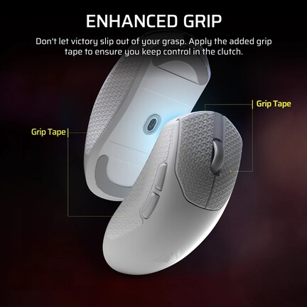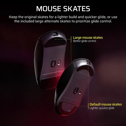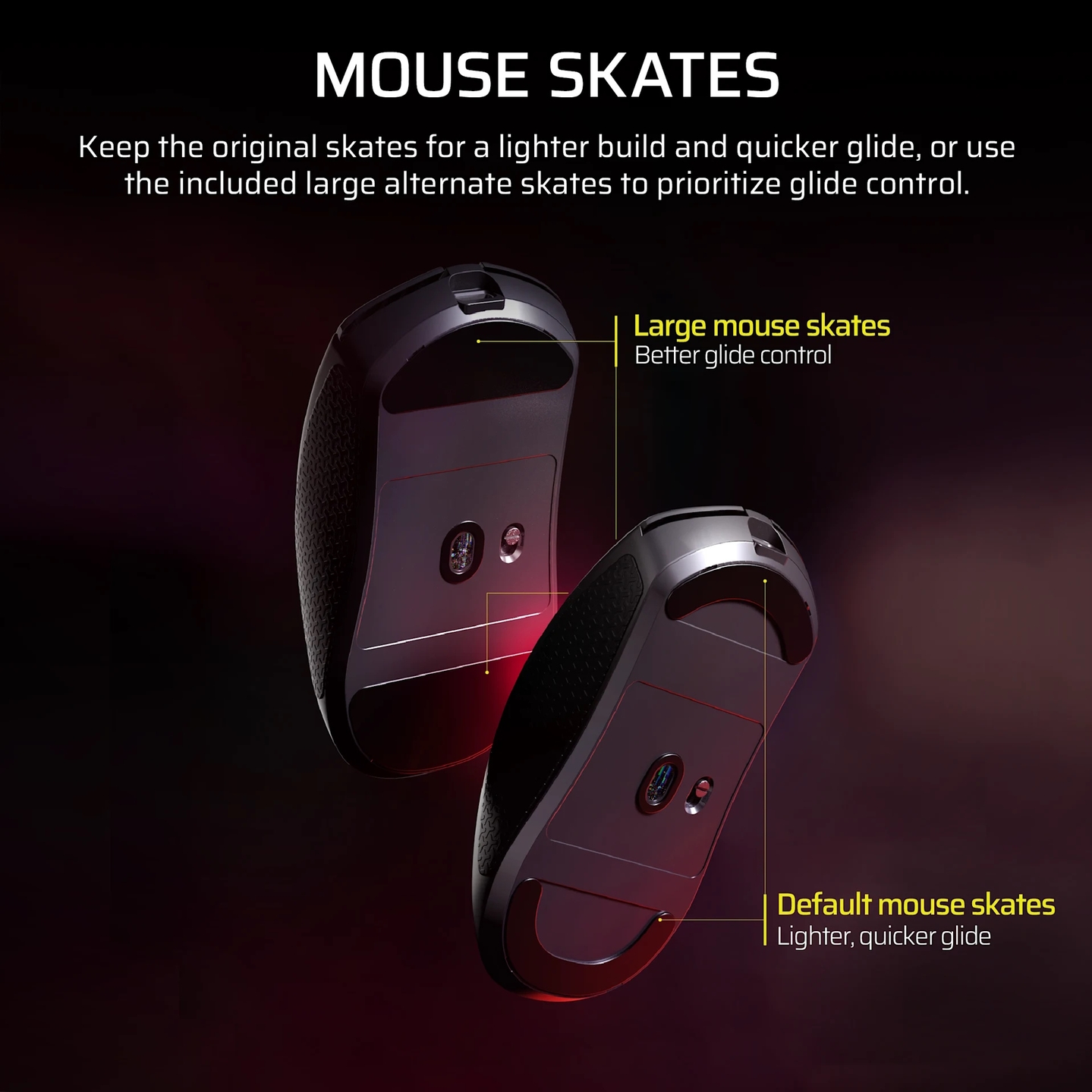 A hason megtelepedett, banán alakú PTFE tappancsokat cpi-deviációt csökkentő szenzorgyűrű egészíti ki, és a csomagban egy nagyobb méretű, bónusz talpkészlet, plusz egy grip tape szett található a 8K-s, csíptetővel ellátott vevőegységen kívül.