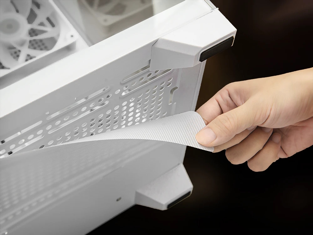 A feketében, fehérben vagy rózsaszínben választható, microATX-es géplak 4 PCI bővítőhellyel rendelkezik, és 365 mm-es magasságához 285 mm-es szélesség társul, 436 mm-es mélység kíséretében. A két porszűrő betéttel ellátott konstrukcióba 170 mm magas processzorhűtőt, 400 mm hosszú videokártyát és egy 2,5, plusz egy 2,5 vagy 3,5 hüvelykes adattárat építhetünk be, miközben hardvereink üzemi hőmérsékletét kilenc ventilátor segíthet kordában tartani. A csomaghoz három 120 mm-es, RGB LED-ekkel meghintett légkavaró jár tartozék gyanánt, amelyek fixen 1200 fordulatot tesznek meg percenként, míg a vizezés elkötelezett hívei két radiátorral (egy 240/280, meg egy 240/280/360 mm-es) tervezhetnek.