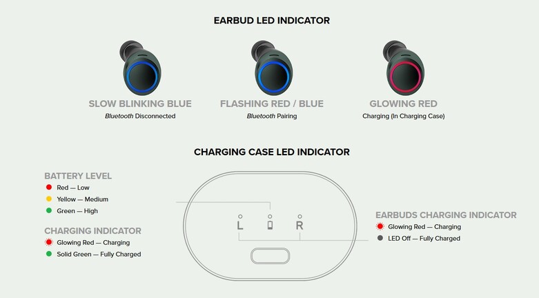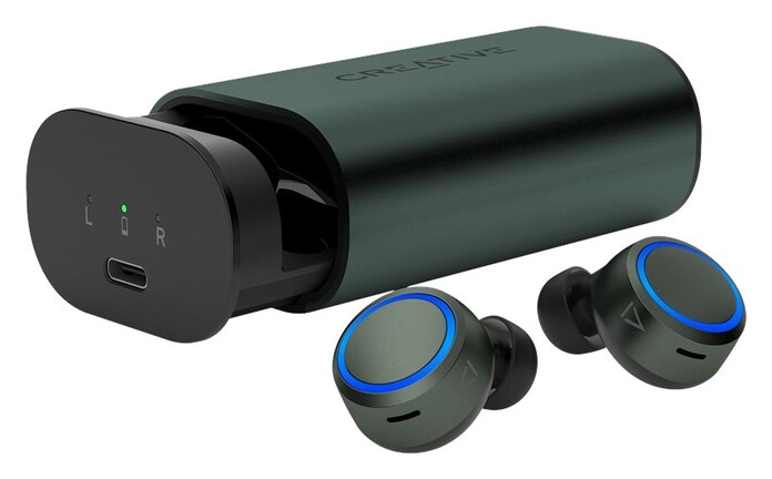 Az 5,2 grammos fülegységekbe integrált, töltésenként mintegy 10 órás üzemidővel kecsegetető, 55 mAh-s akkumulátort a két mellékelt, 28 cm-es USB Type-C kábel egyikével "tankolhatjuk" fel nagyjából 2-3 óra alatt, de a Qi-kompatibilitás sem hiányzik a termék fegyvertárából. A picike hangsugárzók körül egy LED gyűrű állomásozik, ami a Bluetooth kapcsolat állapotáról, illetve a töltési folyamat megvalósulásáról tájékoztatja a felhasználót.