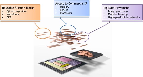 Az egész lényegében úgy küzd az egyre drágábbá váló chiptervezés gyártási problémáival, hogy sokkal hatékonyabbá teszi az egyes részek újrahasznosítását, miközben a teljesítményre nincs lényegi hatással, továbbá behozza a széleskörű skálázhatóságot is, hiszen a szabványosított interfészekkel az egyes chipletek egyszerűen cserélhetők. Ezekkel végeredményben alacsonyabb költség mellett tervezhető meg egy adott dizájn, miközben annak a kritikus részeit akár lehet modern eljárással is gyártani.