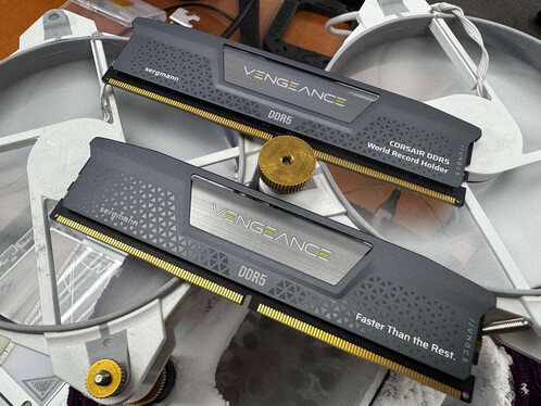 A német nemzetiségű, sergmann néven ismert tuningmesternek 13 530 MT/s-os sebességet sikerült kisajtolnia – CL 68-127-127-127-2-es primér időzítésekkel – egy 48 GB-os Corsair készletből (CMK48GX5M2X8000C38) származó, 24 GB-os Vengeance modulból, amit persze folyékony nitrogénnel hűtött.