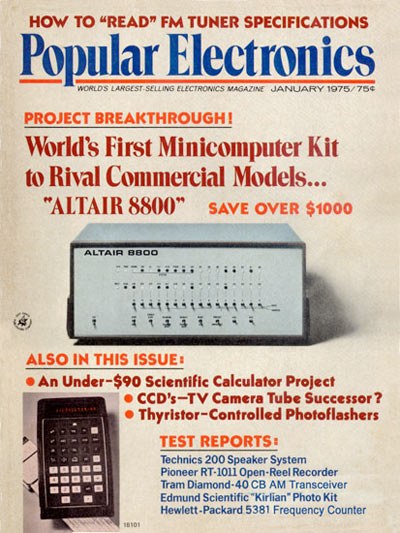 A felhasználó által összeállítható kiszerelésben a Micro Instrumentation and Telemetry Systems (MITS) elkezdi árusítani az Altair 8800-as mikroszámítógéphez szükséges hardvereket az Egyesült Államokban. A következő évben erre a 2 MHz-es Intel 8080A processzoros gépre készítette el a Microsoft az Altair Basic programnyelvet.