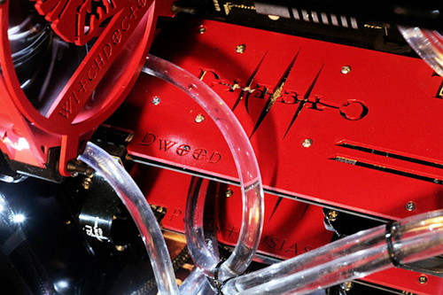 Az alkotás különlegességét az adja, hogy rengeteg egyedi, saját készítésű elem fedezhető fel a konfiguráció minden szegletében, amely már önmagában is dicséretes. Az Antec Three Hundred midi torony olyan színű és textúrájú festést kapott, mintha csak kőből lenne kifaragva, ezzel máris jól illik a Diablo játékok hangulatához. Burkolatán természetesen a játék és készítőjének logója is szerepel, a feliratok és ábrák olyan részletesek, hogy minden bizonnyal lézervágó segítségével készültek.