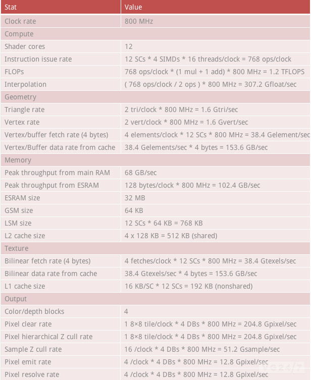 A VGLeaks oldalán részletes információkkal szolgáltak a Durango kódnevű konzolban található GPU-ról, melynek alapján immár annak teljesítménye felér egy mai modern, DirectX11-támogatással rendelkező asztali videokártya processzorával. Aki kíváncsi a teljes technológiai részletekre, az ott megtalálja a leírást, de a képességek és tulajdonságok összefoglaló táblázatát ide is beteszem: