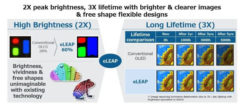 Ketten együtt már elég erősek lehetnek ahhoz, hogy reális kihívók legyenek, amihez önmagában egyik vállalat sem lett volna elég. Az eLEAP eljárás a Japan Display szerint kétszer akkora fényerőt produkál, mint a rivális eljárások, és az élettartama is lényegesen nagyobb.