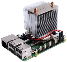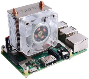 Erre a problémára kínál megoldást a Seeedstudio ICE Tower CPU Cooling Fan nevezetű hűtő, ami kompatibilis a korábbi generációs "málnákkal" is (Raspberry Pi 4 Model B/Raspberry Pi 3 Model B/Raspberry Pi 3 Model B+). Az eszköz ránézésre úgy fest, mintha tipikusan az asztali, x86-os országból érkezett volna, és négy rögzítőfurat segítségével foglalja el helyét a forrongó SoC felett. Hétlapátos légkavarójának mozgásban tartásához 5 voltra van szüksége, melyet a lap 40 tűs GPIO kivezetésén keresztül érhet el.