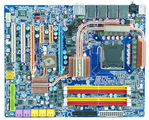 Az előadás során a meghívottak megismerkedhettek a Gigabyte legkomolyabb Intel P45 chipkészletes alaplapjával, az EP45-DQ6-tal is. A komoly hőcsőarzenállal ellátott deszkán 12 fázis szolgálja a CPU áramellátását, további 2-2 pedig a legfeljebb DDR2-1200-as memóriát és az északi hidat. Természetesen megkapta az eddigi Gigabyte fejlesztéseket is, például a dupla BIOS-t vagy a szilárdelektrolitos kondenzátorokat. Az alaplap PCI Express 2.0 csatlakozóit úgy alakították ki, hogy akár négy grafikus kártyát is használhassunk vele. Szintén a négyes szám jegyében születtek az Ethernet vezérlők és a hátlapi eSATA csatlakozók is. A P45-ös lapkakészlet egyik újdonsága az elsősorban notebookoknál ismert TPM biztonsági technológia.