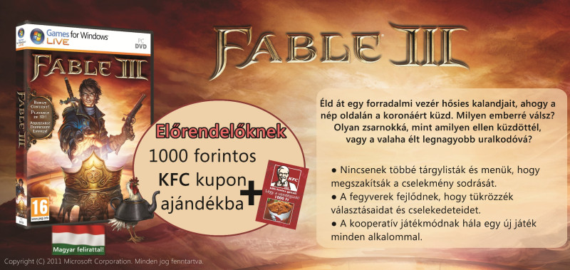 Azok akik pedig a mai naptól induló előrendelésben megrendelik a játék PC-s változatát a Microsoft hivatalos viszonteladóinál, 1000 Ft-os KFC vásárlási utalványt kapnak. Kedves gesztus köszönjük, szeretjük a csirkés éttermet.