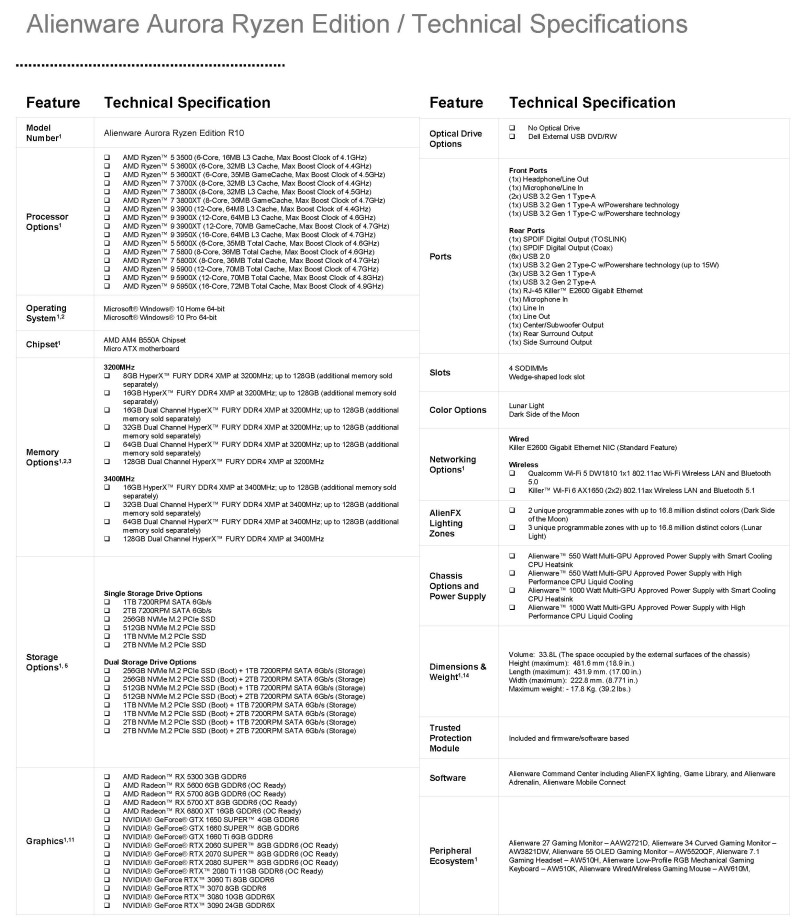 A két notebook mellé érkezik egy új változat az Aurora asztali PC-ből is, mely az eddigi Intel alapok helyett AMD processzorra támaszkodik. Ez az Aurora Ryzen Edition R10, és pénztárcánktól függően választhatunk bele CPU-t a Ryzen 5 3500-tól Ryzen 9 5950X-ig terjedő listából, és persze a többi komponens is tág határok között módosítható az RX 5300-as VGA-tól a GeForce RTX 3080-ig.