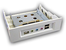 A megoldás kulcsa abban rejlik, hogy a kábelek segítségével a gép hátulján lévő Firewire (ha van ilyenünk) és audio portokat a lyukas takarólemezen át, a gép belsején keresztül a front panelig elvezeti. Az USB esetében nem kell lefoglalni a gép hátulján lévő kivezetéseket, meghagyhatjuk az állandóan jelenlévő eszközök - nyomtató, scanner - számára, ebben az esetben viszont az alaplapunknak rendelkeznie kell belsõ USB csatlakozási lehetőséggel.