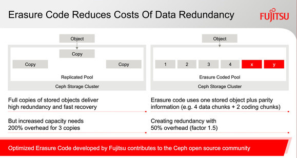 Rég elmúltak már azok az idők, amikor egy-egy tárolási feladathoz dedikált merevlemez tartozott. A mai adatmennyiséget szoftveres úton kezelik összevont adattömb (storage pool) konfigurálásával, ez biztosítja a kellő rugalmasságot. Szoftveres téren a Ceph adattároló rendszerre szavaztak, aminek fő különlegessége, hogy nyílt forráskódú. A Fujitsu szakemberei a Red Hat által menedzselt disztribúcióhoz nyúltak hozzá, alaposan finomhangolták, és ahol kellett, extra funkciókkal látták el.