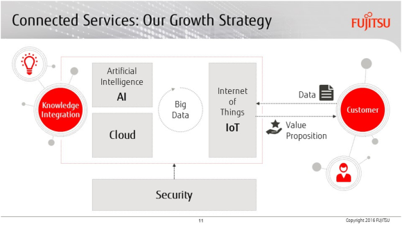A felhős technológia alapja a MetaArc, azon belül is a nyílt forráskód OpenStackre építő K5 felhős platform, ami már megkezdte hódító útját. A legnagyobb privát felhős szolgáltatások használják, de például az angol adórendszer informatikai infrastruktúrája is MetaArc-alapú, Fujitsu megoldás. Szorosan összekapcsolódik a felhővel az IoT témakör, amiről nagyon sokat hallani az utóbbi években. A Fujitsu elemzése szerint technológiai fejlesztésekben egyelőre még nem, de a termelő-szolgáltató ágazatban már nagyon jól kamatoztatható a dolgok internetje. Az összekapcsolt rendszerek és érzékelők által szolgáltatott adattömeg elemzésével hatékonyabbá tehető a termelés. Akkor lesz az egész igazán érdekes, amikor a mesterséges intelligencia is bekerül a képletbe.